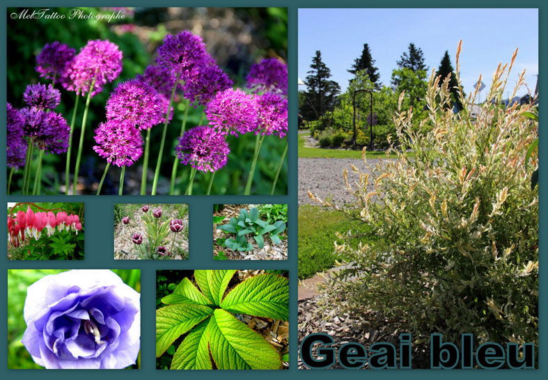 Saule maculé (salix hacuro nishiki intégra), zone 3: bel arbuste au feuillage vert et aux nouvelles pousses blanches et roses. Plus il a d’eau,plus il est beau! Campanule double bleue (Campanula La Belle persi.) ; soleil et mi-ombre, 60 cm x 45 cm, floraison en juin et juillet, zone 3. Rodgersia podophyllla, Rodgersia Sambucifolia et Rodgersia pinnata
